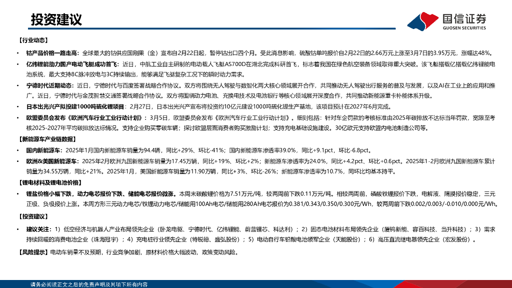 国信证券:锂电产业链双周评(3月第1期):钴产品价格短期暴涨,欧盟发布汽车工业行动计划.pdf