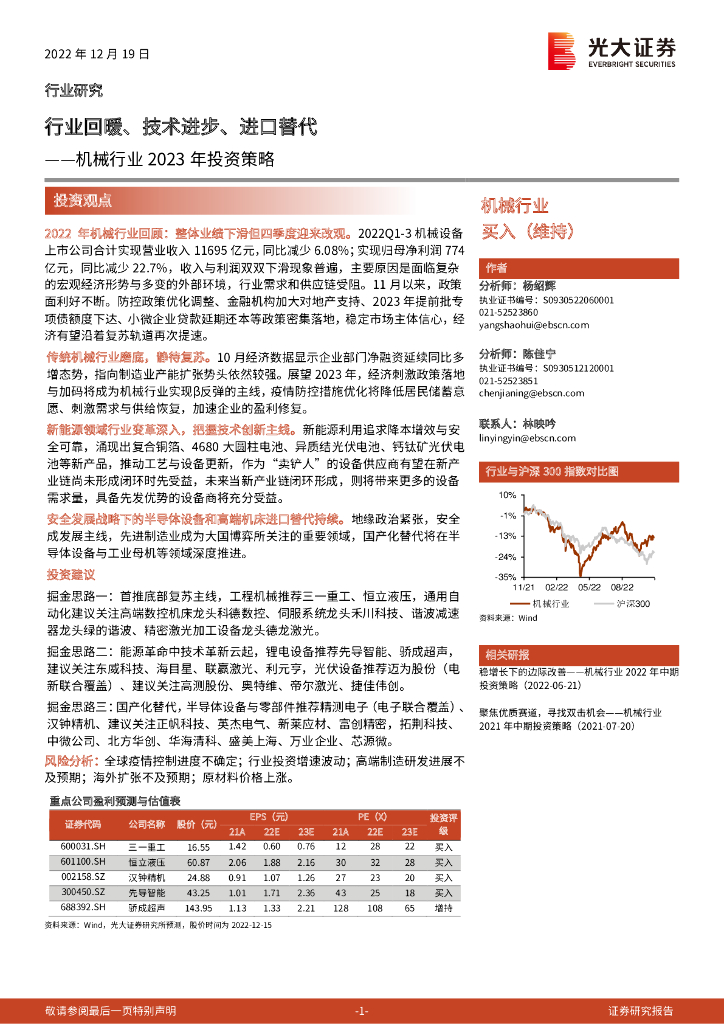 光大证券:机械行业2023年投资策略:行业回暖、技术进步、进口替代.pdf