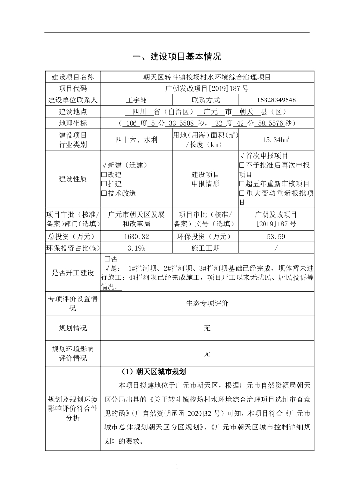 朝天区转斗镇校场村水环境综合治理项目建设项目环境影响报告表(生态影响类) (公示本).pdf