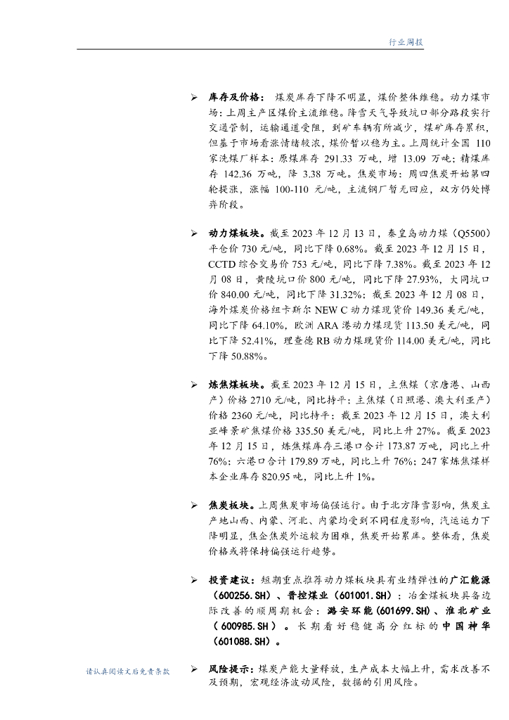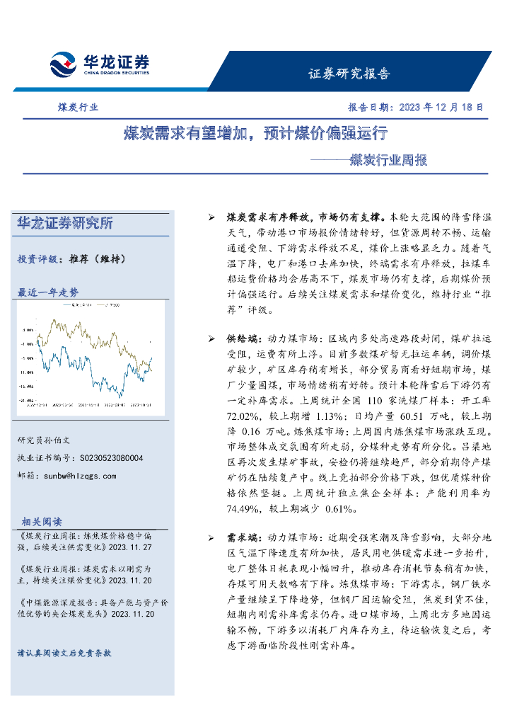 华龙证券:煤炭行业周报:煤炭需求有望增加,预计煤价偏强运行.pdf