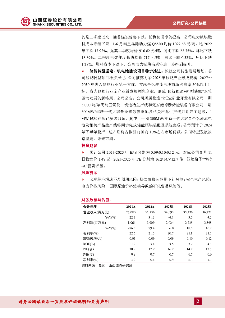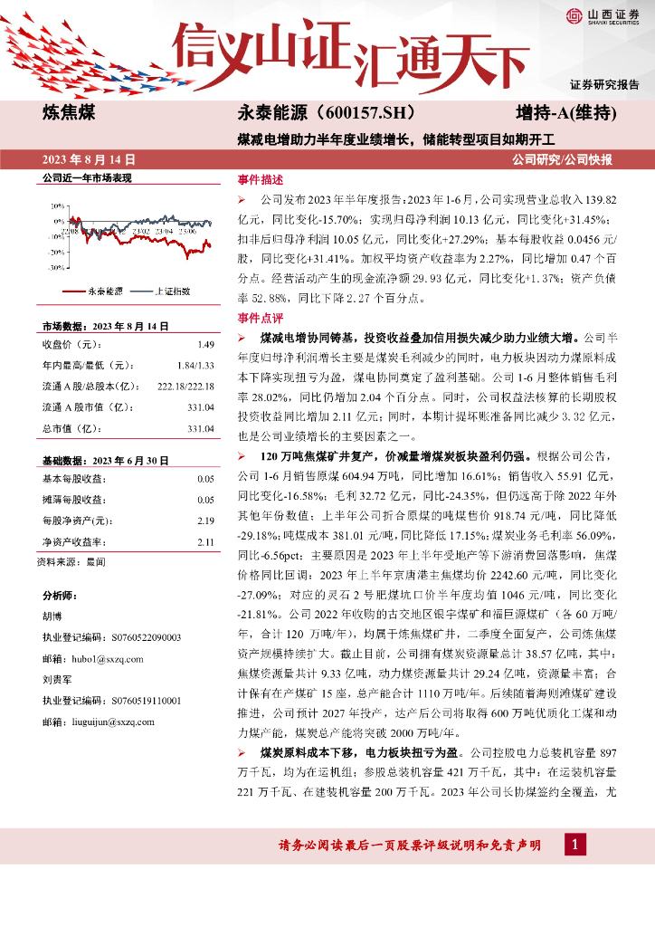 山西证券:永泰能源(600157)-煤减电增助力半年度业绩增长,储能转型项目如期开工.pdf