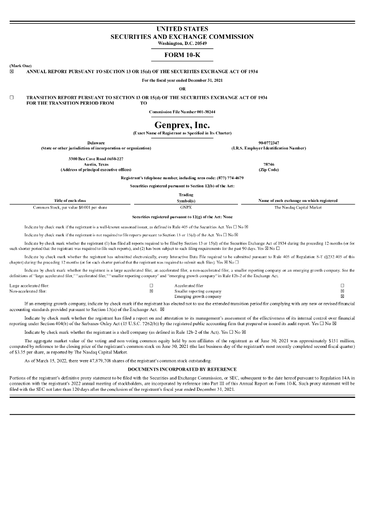 Genprex, Inc.(GNPX)2021财年年度报告(英文版).pdf