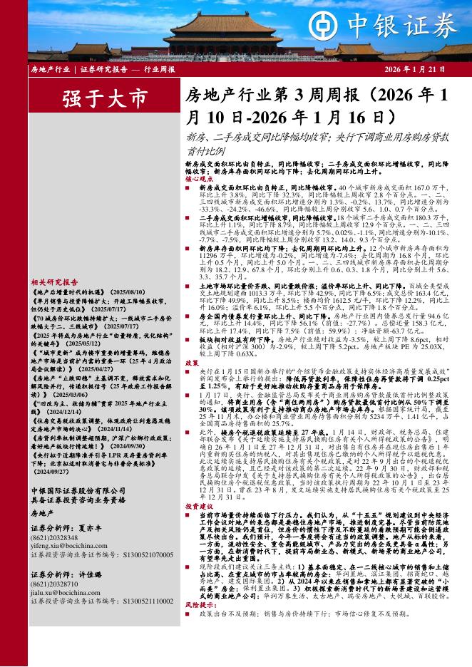 中银证券:房地产行业第3周周报:新房、二手房成交同比降幅均收窄;央行下调商业用房购房贷款首付比例.pdf