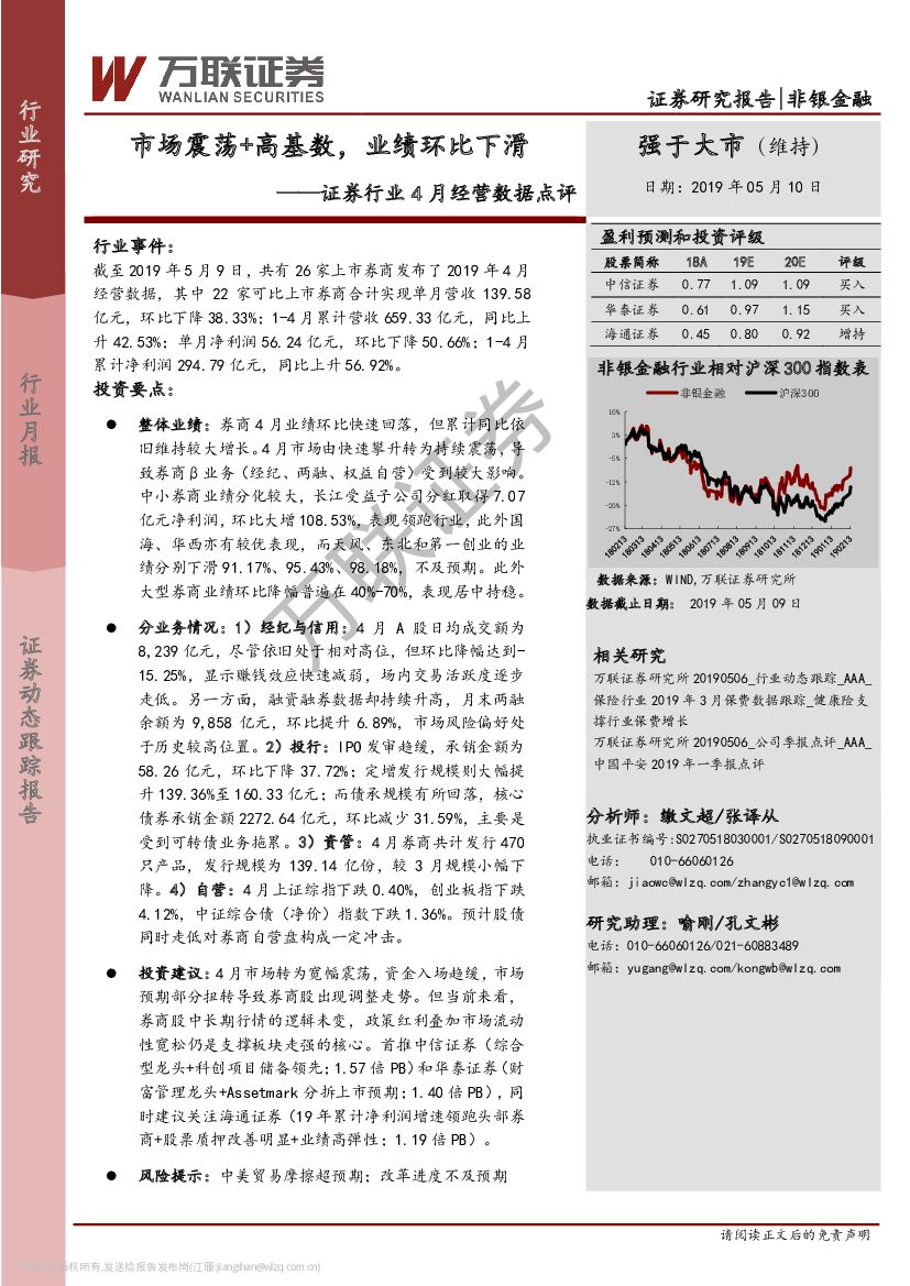 万联证券:证券行业4月经营数据点评:市场震荡+高基数,业绩环比下滑.pdf