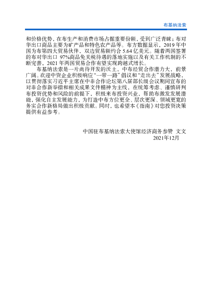 商务部:对外投资合作国别(地区)指南:布基纳法索(2021年版).pdf