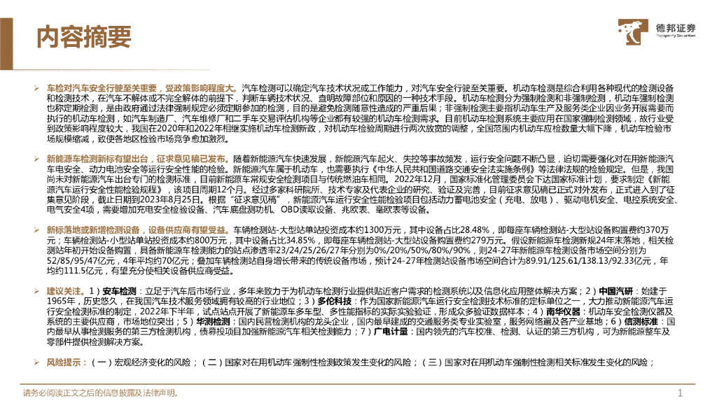 德邦证券:检测行业深度系列报告:新能源车检测新规有望落地,设备厂商或将充分受益.pdf