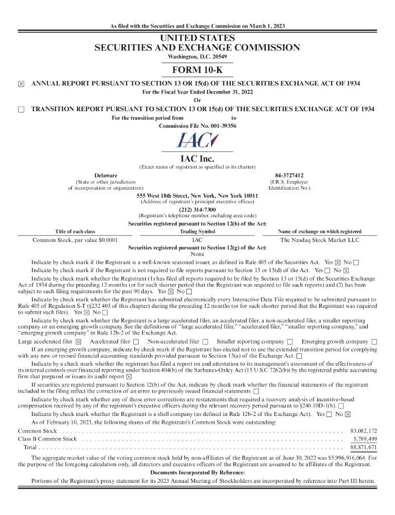 IAC/InterActiveCorp(IAC)2022财年年度报告(英文版).pdf
