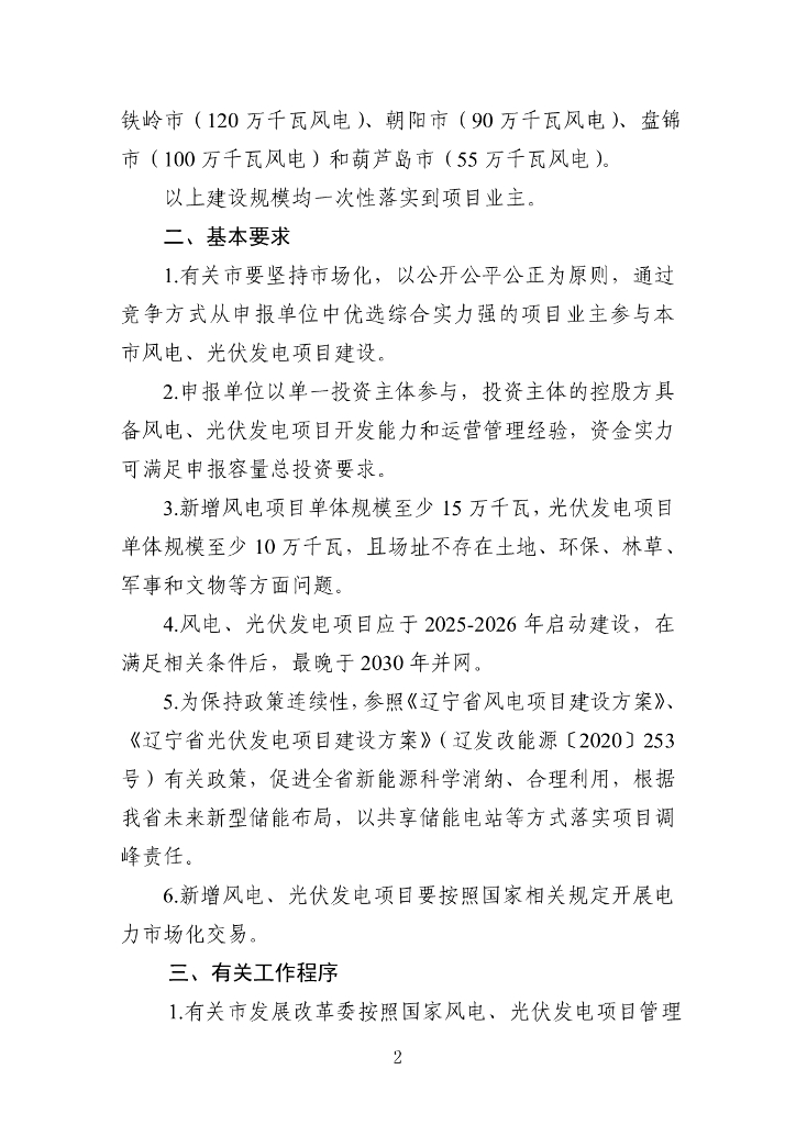 辽宁省2025年第二批风电、光伏发电项目建设方案(征求意见稿).pdf