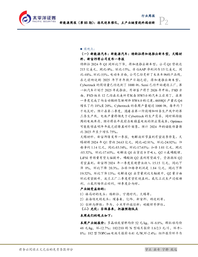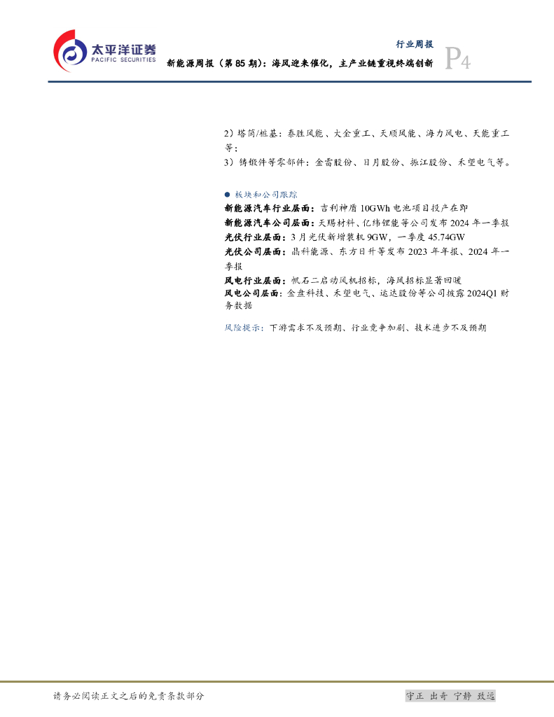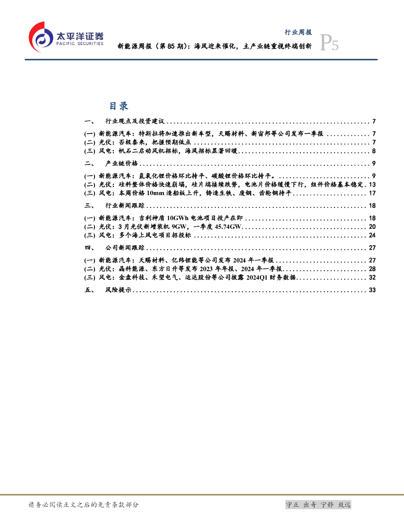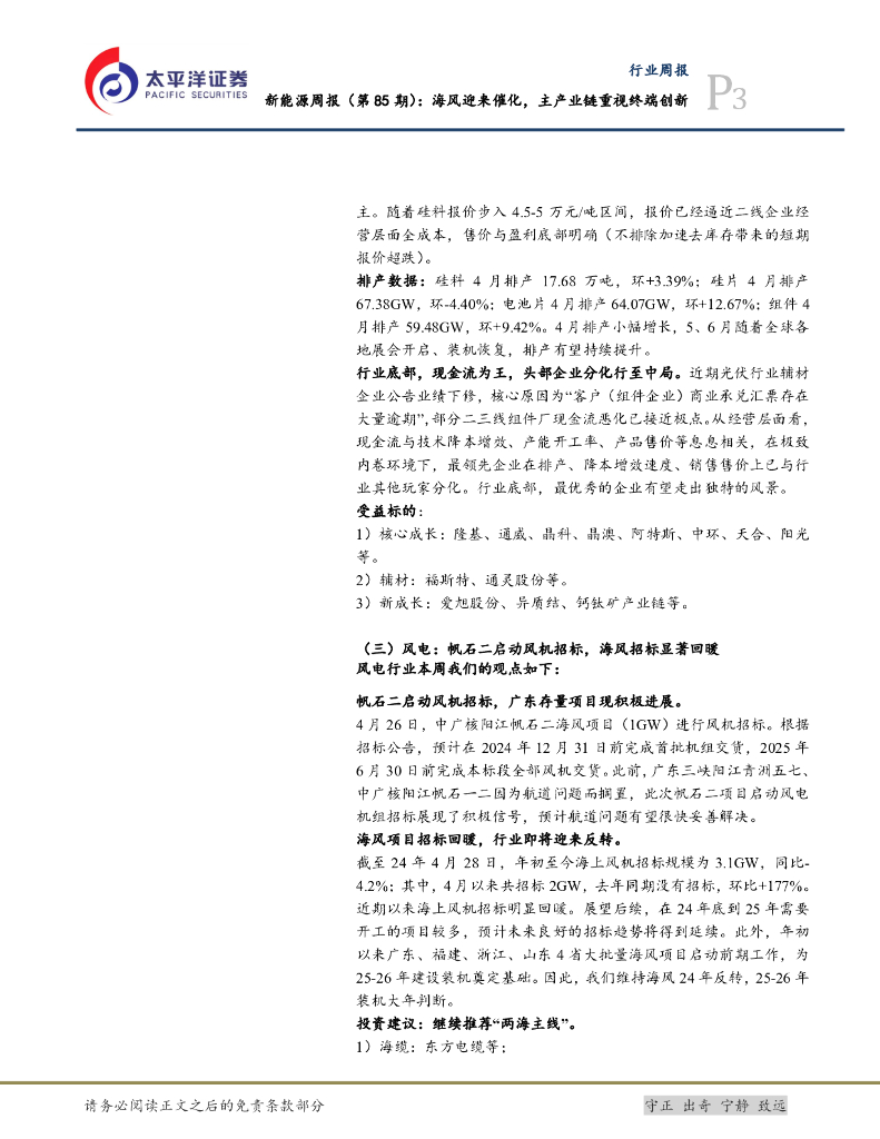 太平洋证券:电力设备及新能源行业新能源周报(第85期):海风迎来催化,主产业链重视终端创新.pdf
