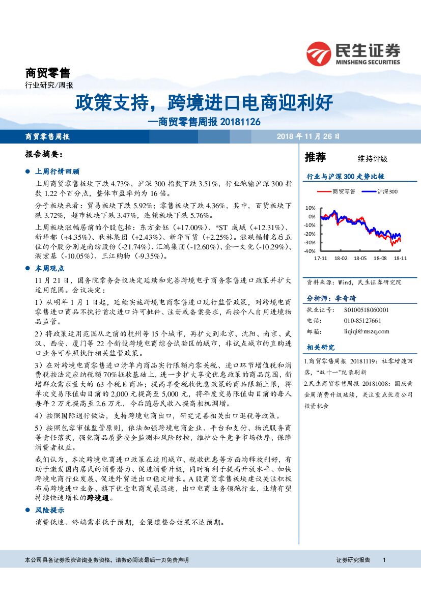民生证券:商贸零售周报:政策支持,跨境进口电商迎利好.pdf