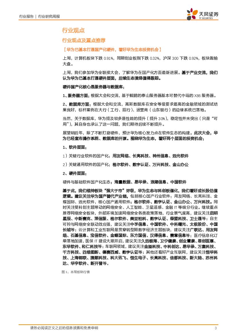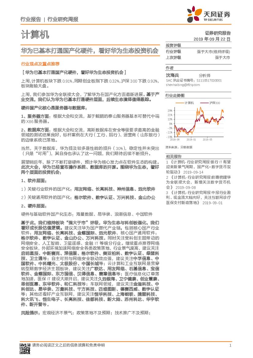 天风证券:计算机行业研究周报:华为已基本打通国产化硬件,看好华为生态投资机会.pdf