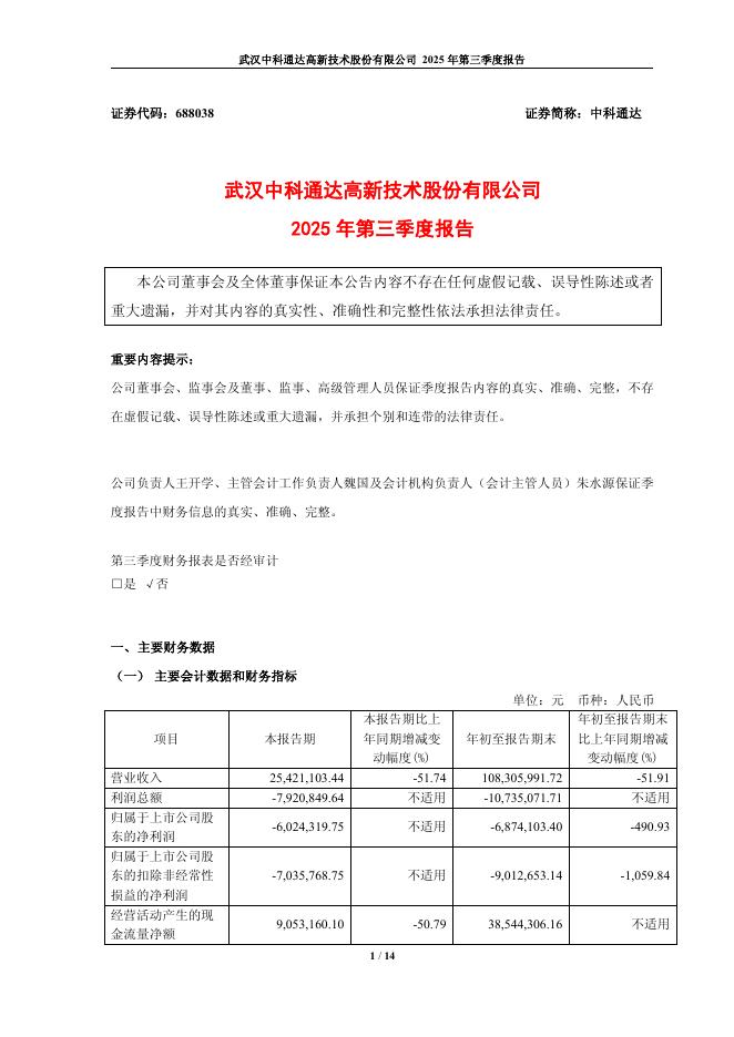 688038-中科通达:2025年第三季度报告.pdf