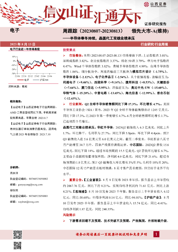山西证券:电子周跟踪:半导体寒冬持续,晶圆代工双雄业绩承压.pdf
