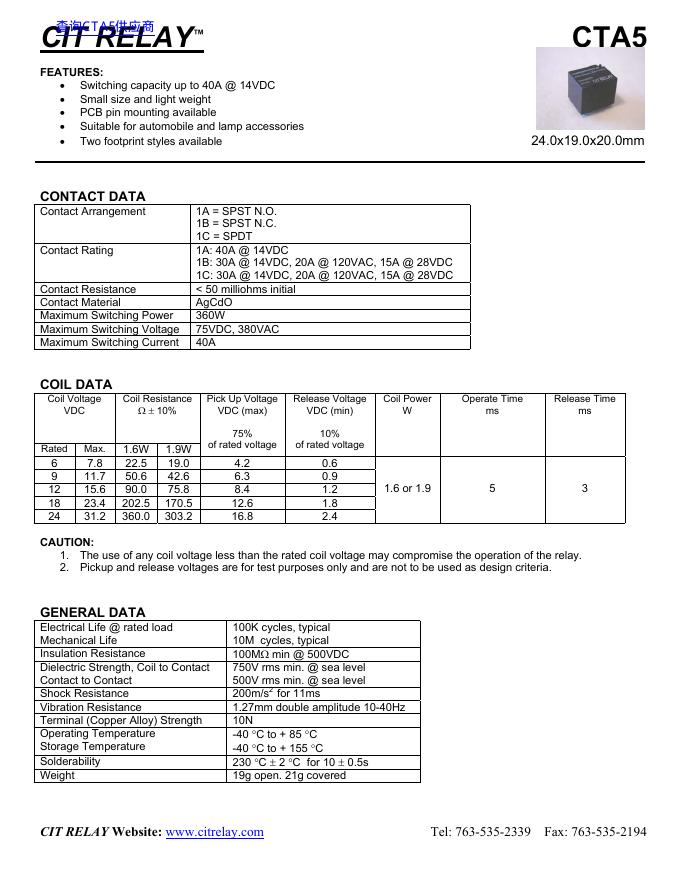 CIT RELAY CTA5 数据手册(1).pdf