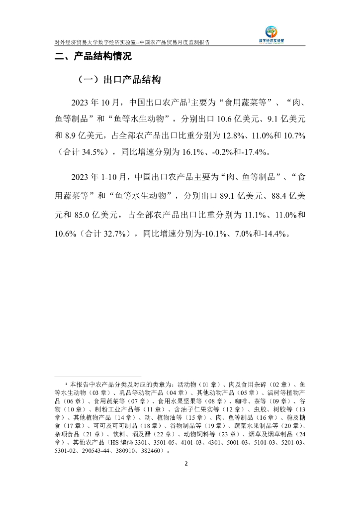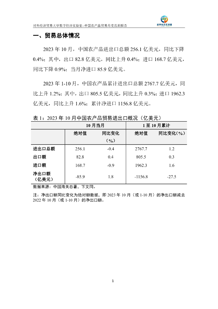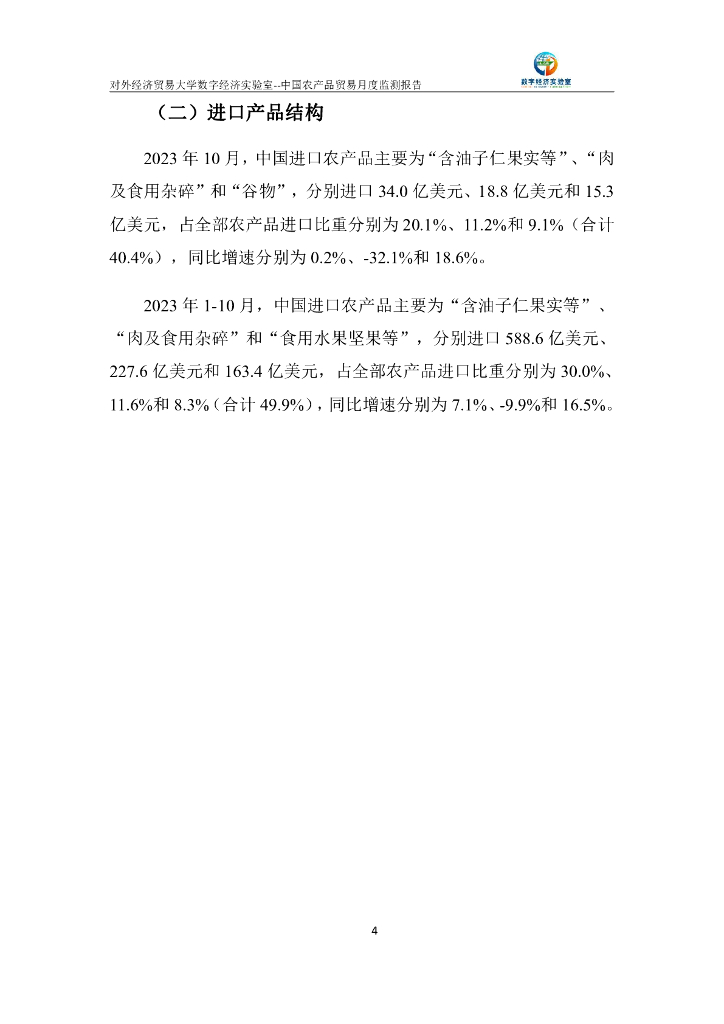 对外经济贸易大学:中国农产品贸易月度监测报告(2023年1-10月).pdf