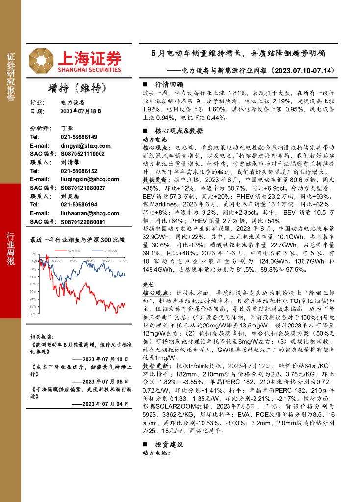 上海证券:电力设备与新能源行业周报:6月电动车销量维持增长,异质结降铟趋势明确.pdf
