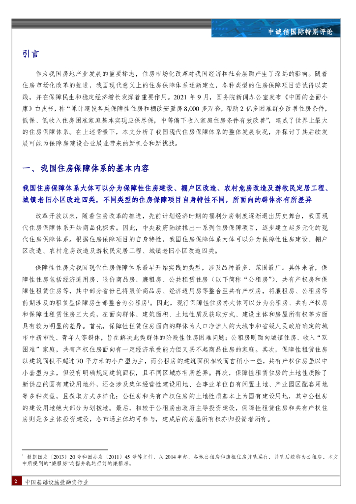 中诚信国际:中国基础设施投融资行业:我国住房保障体系的发展及其对保障房类基础设施投融资企业带来的机遇与挑战.pdf