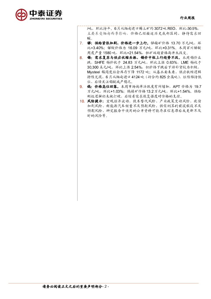 中泰证券:有色金属行业周报:锡库存加速去化.pdf