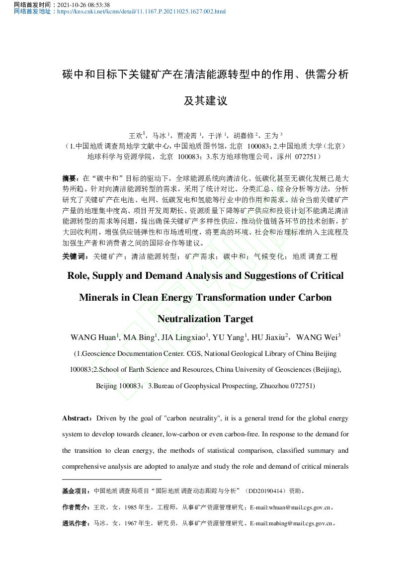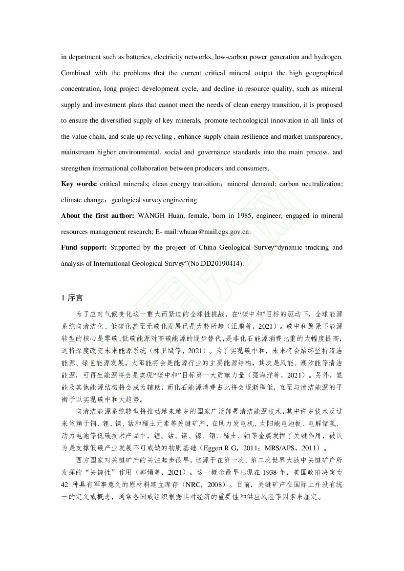 中国地质调查局:碳中和目标下关键矿产在清洁能源转型中的作用、供需分析及其建议.pdf