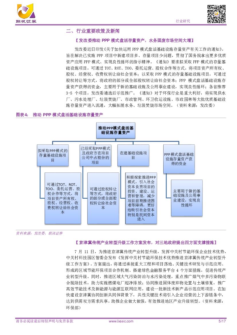 联讯证券:【联讯环保周观点】发改委推动PPP模式盘活存量资产,水务固废市场空间大增.pdf
