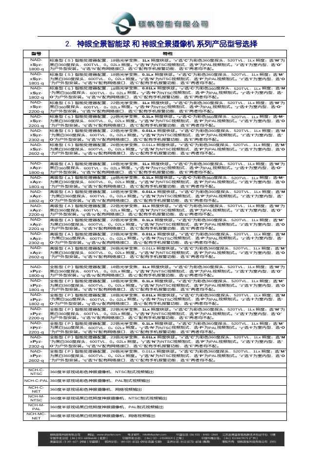 硕凡智能 神眼全景智能球和神眼全景摄像机 系列产品型号 选择指南.pdf