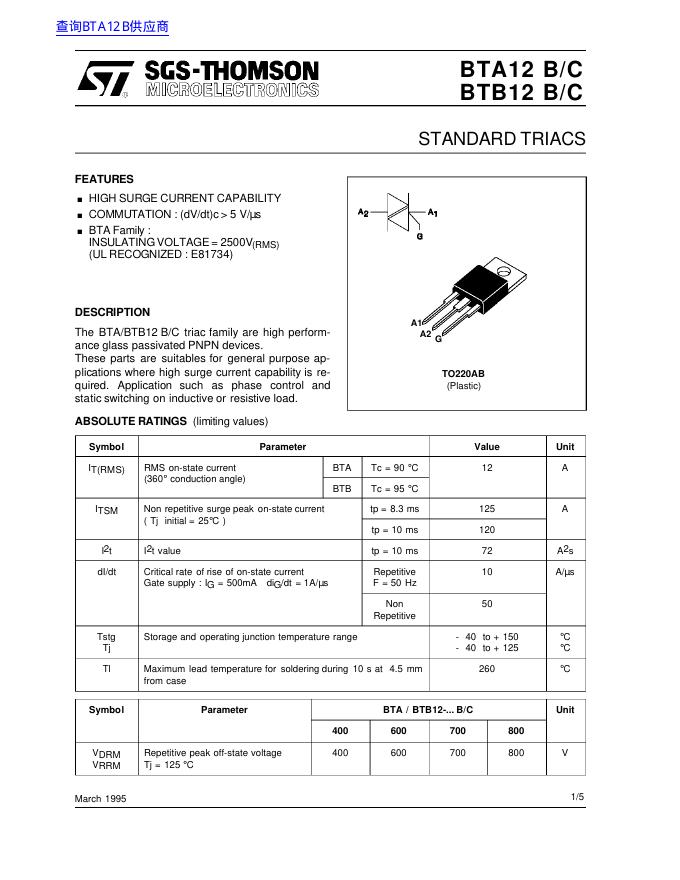 ST BTA12 B/C,BTB12 B/C 数据手册.pdf