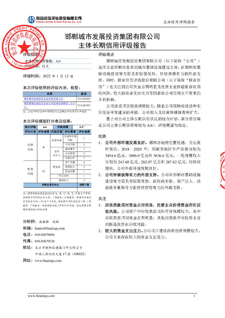 联合资信:邯郸城市发展投资集团有限公司信用评级报告.pdf