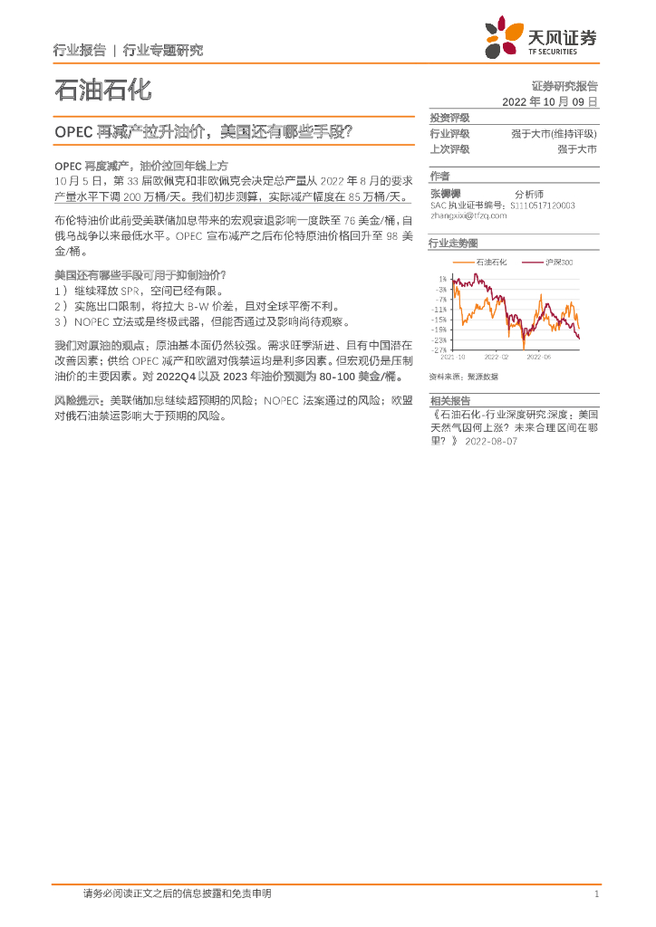 天风证券:石油石化:OPEC再减产拉升油价,美国还有哪些手段?.pdf
