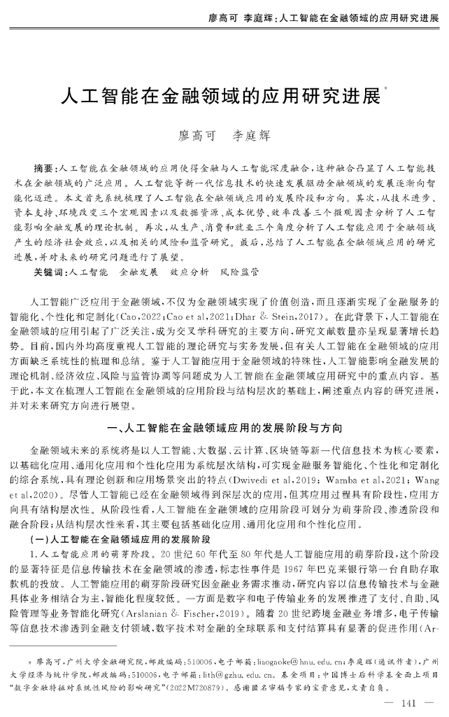 廖高可&李庭辉:人工智能在金融领域的应用研究进展.pdf