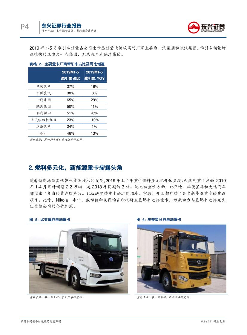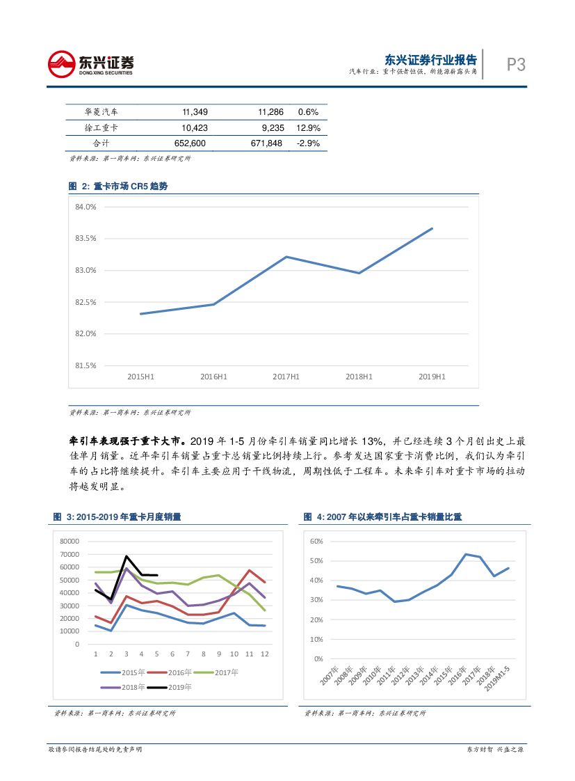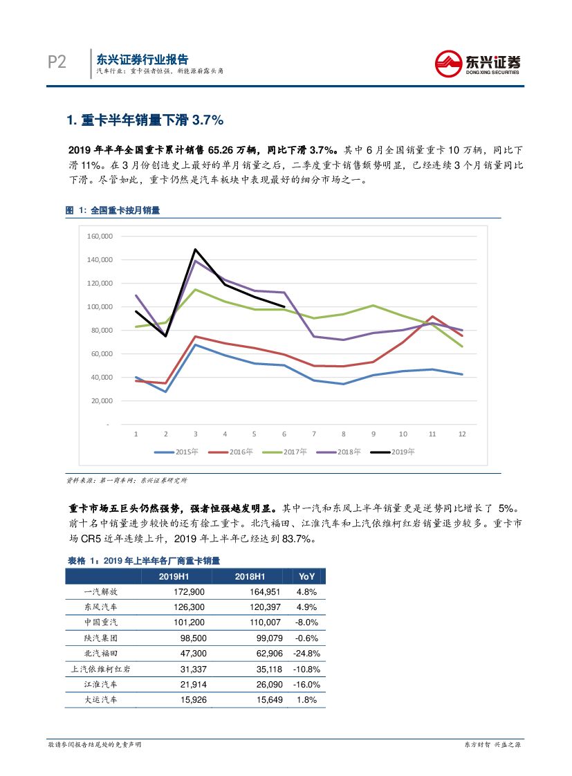 东兴证券:2019年上半年重卡销量点评:汽车行业:重卡强者恒强,新能源崭露头角.pdf