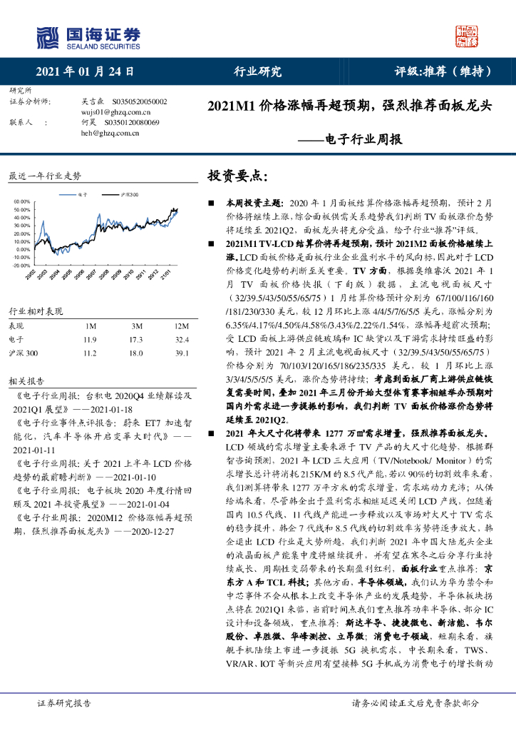 国海证券:电子行业周报:2021M1价格涨幅再超预期,强烈推荐面板龙头.pdf