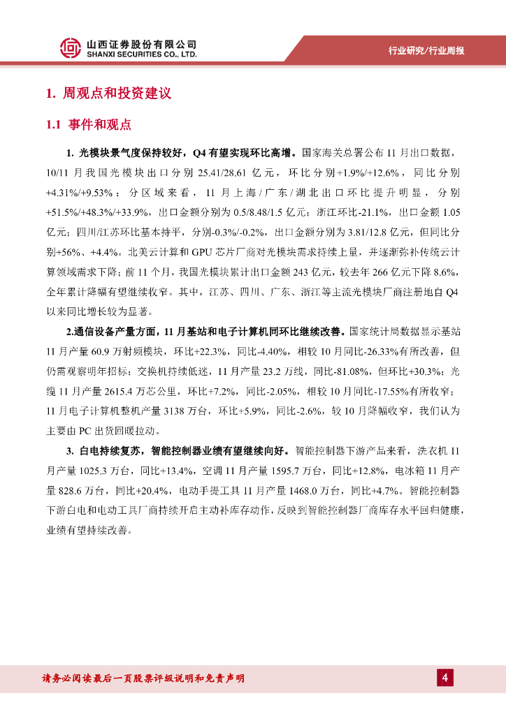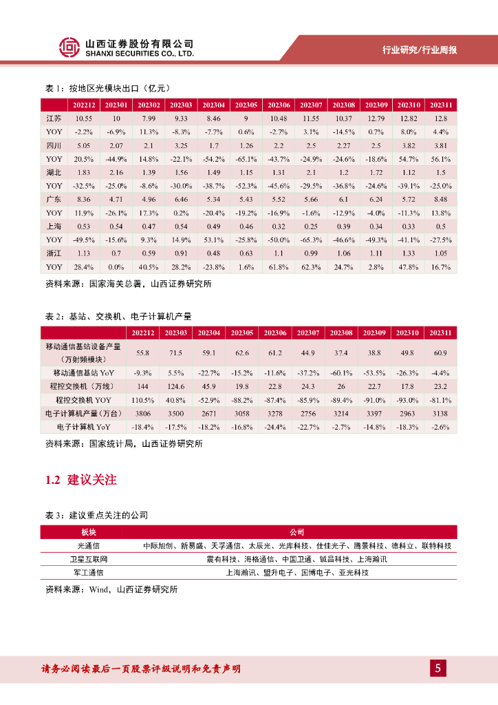 山西证券:通信周跟踪:光模块出口环比继续向好,基站产量环比回暖.pdf