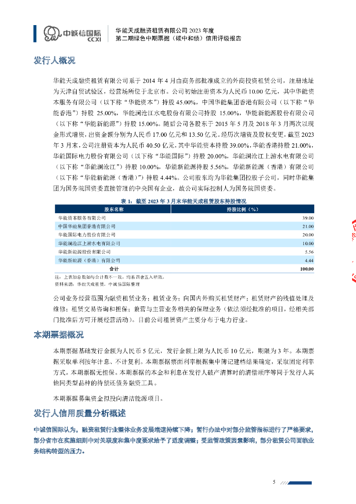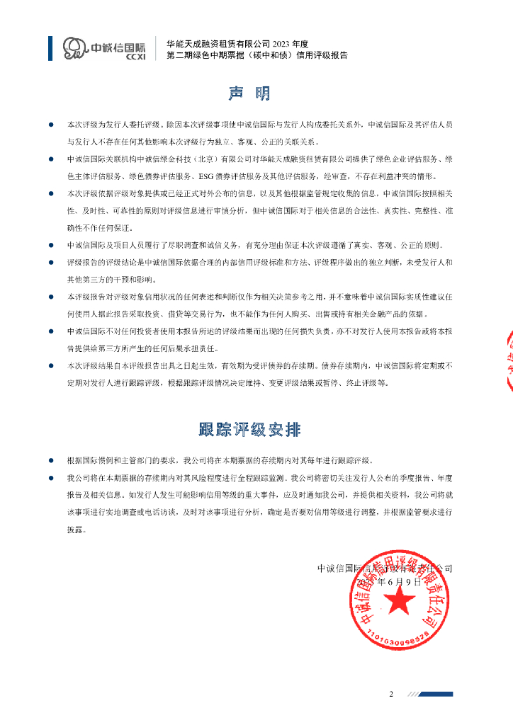 中诚信:华能天成融资租赁有限公司2023年度第二期绿色中期票据(碳中和债)信用评级报告.pdf