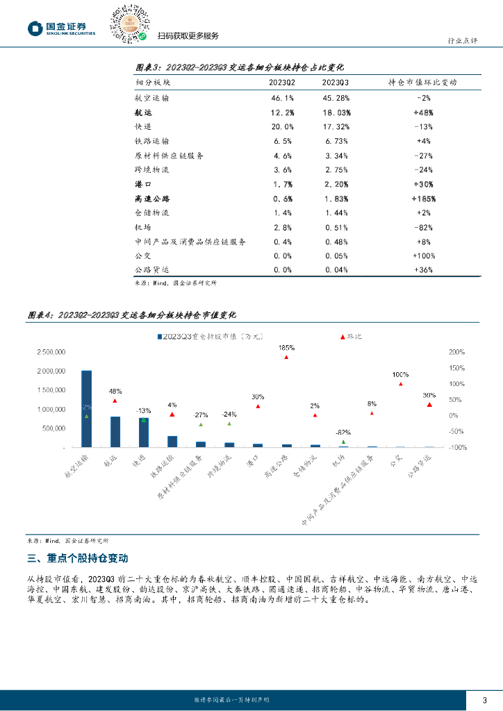 国金证券:交通运输产业行业研究:2023Q3交运板块持仓分析.pdf