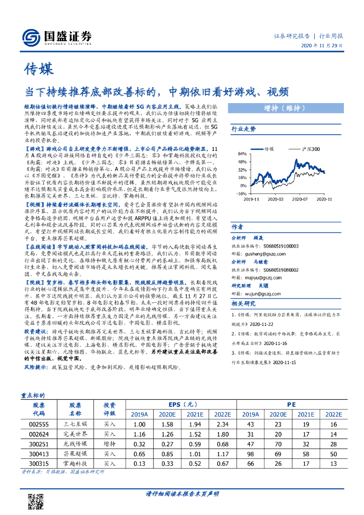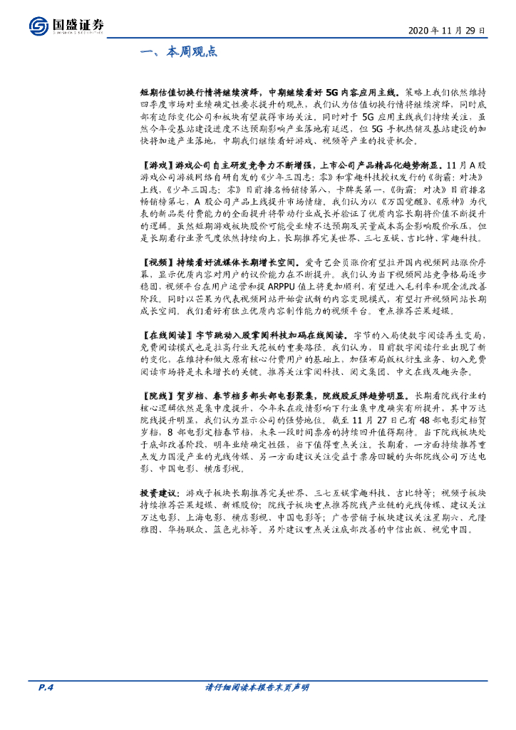 国盛证券:传媒行业周报:当下持续推荐底部改善标的,中期依旧看好游戏、视频.pdf