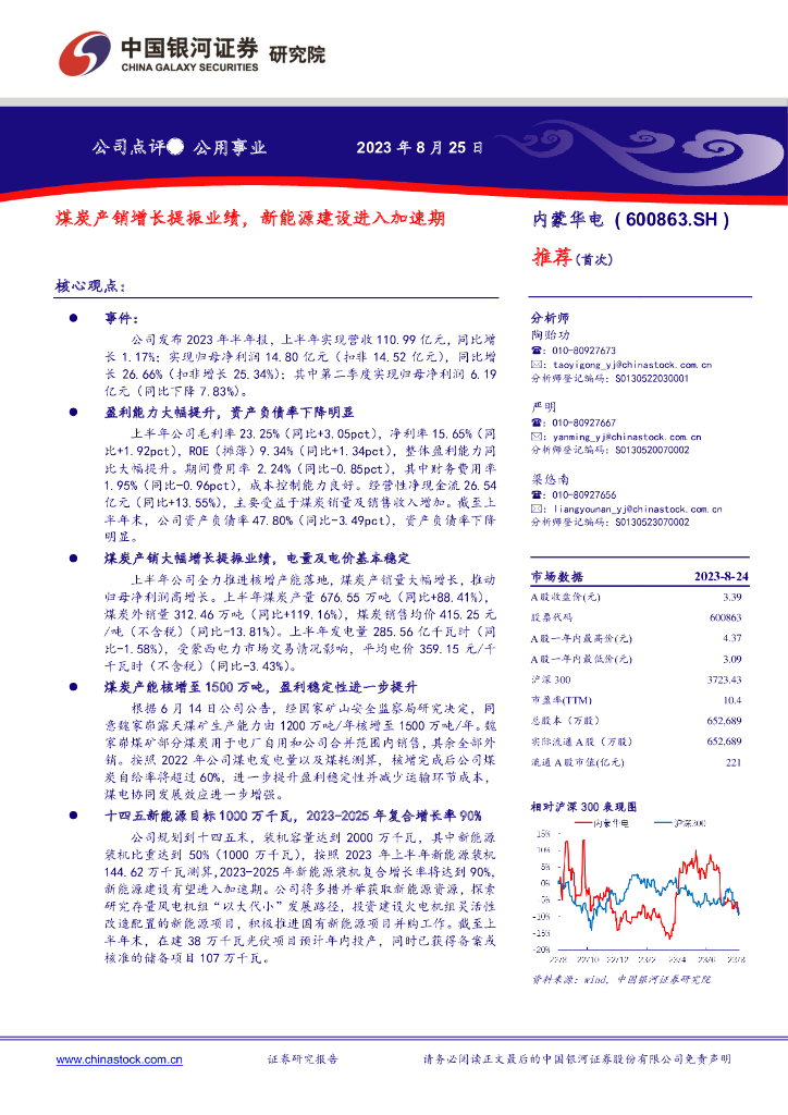 中国银河:内蒙华电(600863)-煤炭产销增长提振业绩,新能源建设进入加速期.pdf