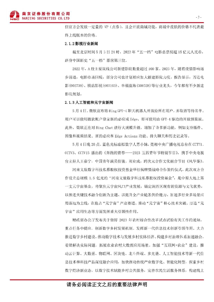 南京证券:传媒周汇报:五一档电影票房历史第三,继续关注AIGC落地.pdf