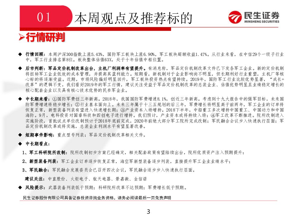 民生证券:国防军工行业周报:军品定价机制改革出台,主机厂利润率有望提升.pdf