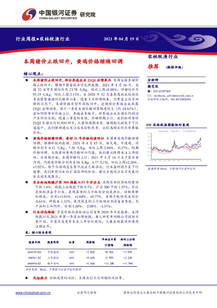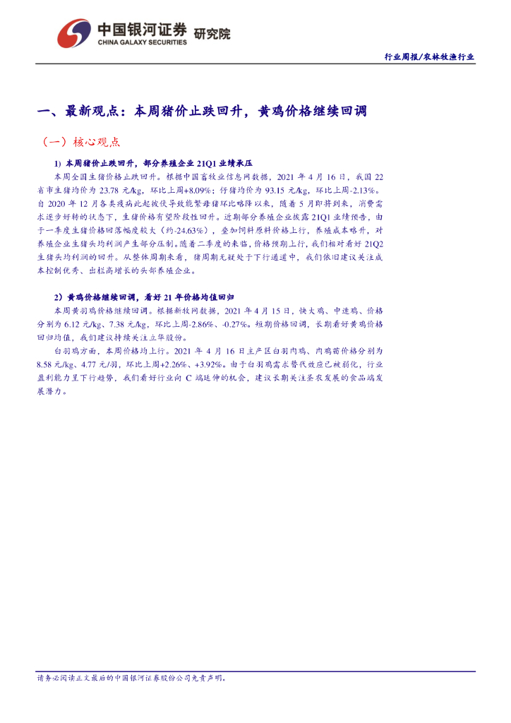 中国银河:农林牧渔行业:本周猪价止跌回升,黄鸡价格继续回调.pdf