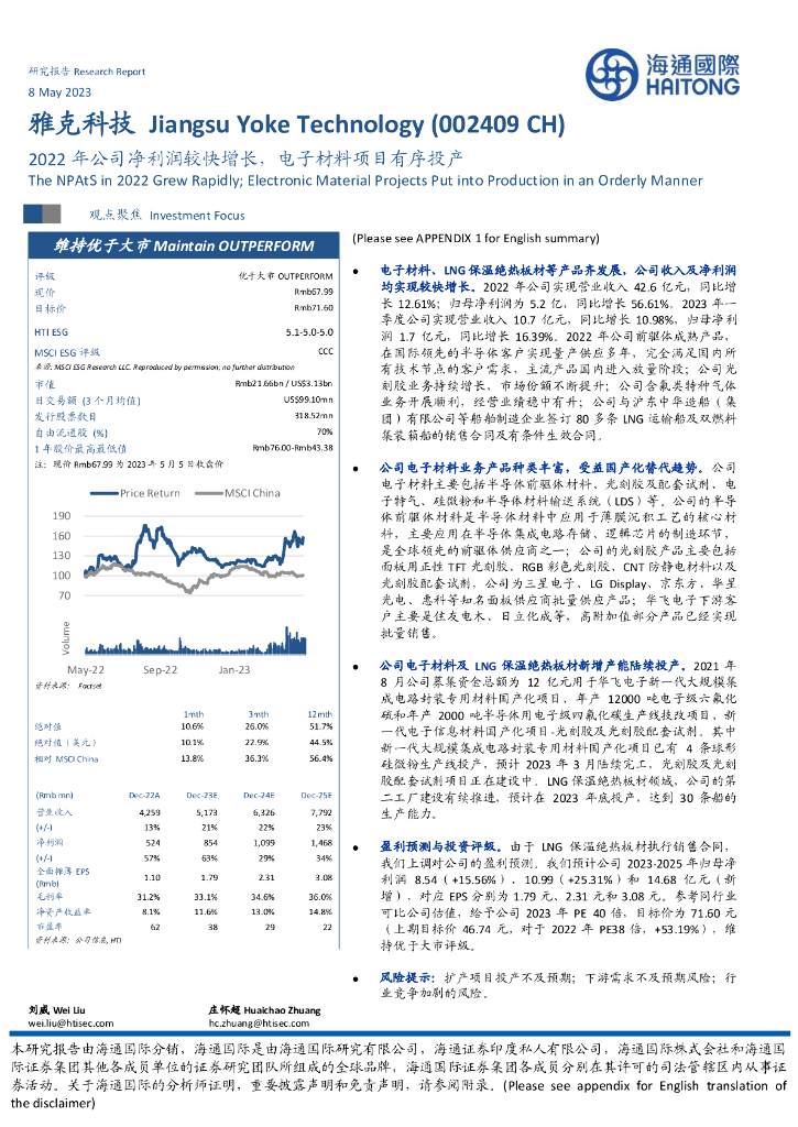 海通国际:雅克科技(002409)-2022年公司净利润较快增长,电子材料项目有序投产.pdf