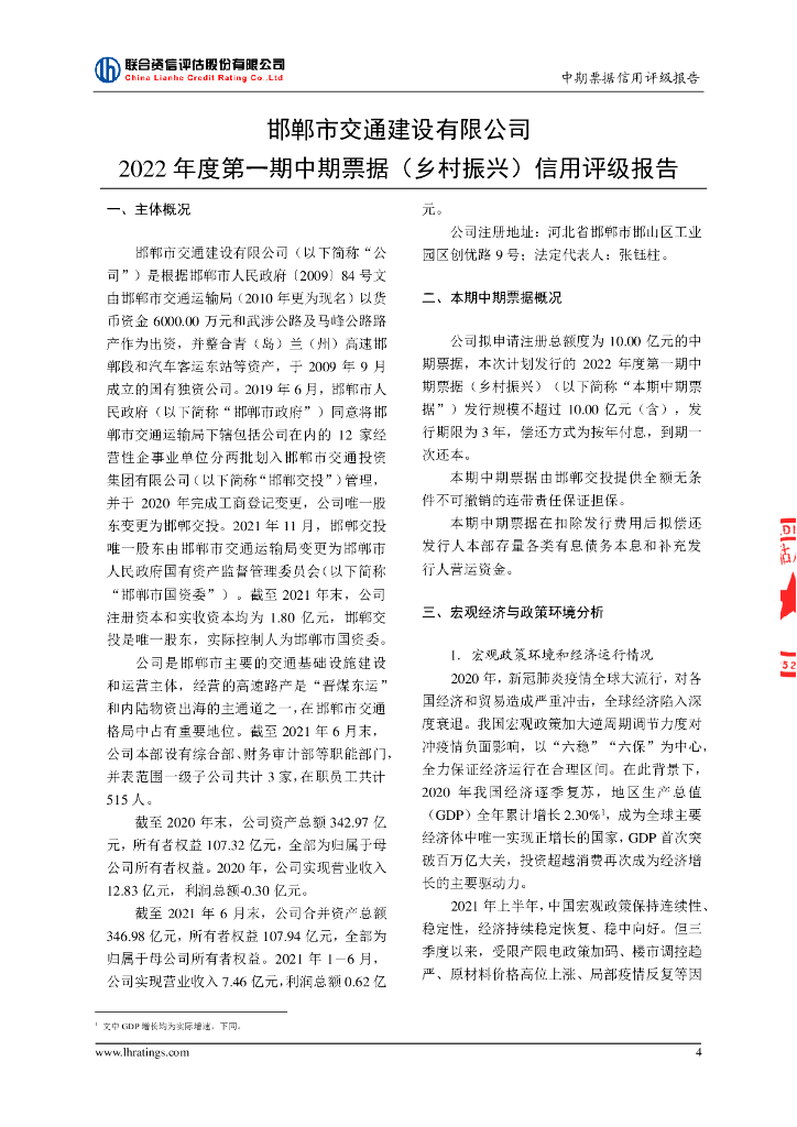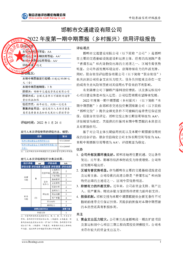 联合资信:邯郸市交通建设有限公司2022年度第一期中期票据(乡村振兴)信用评级报告.pdf