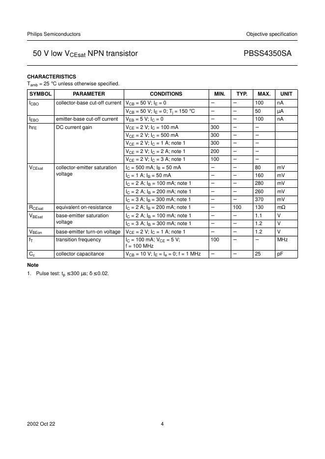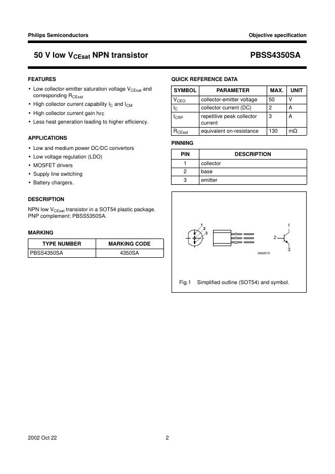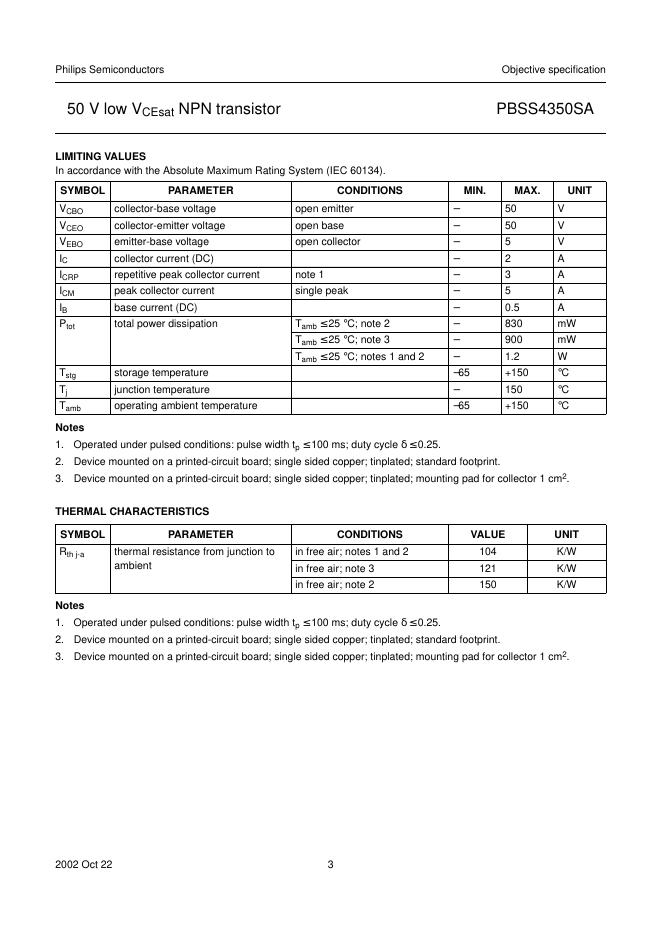 philips PBSS4350SA 50 V low VCEsat NPN transistor 数据手册.pdf