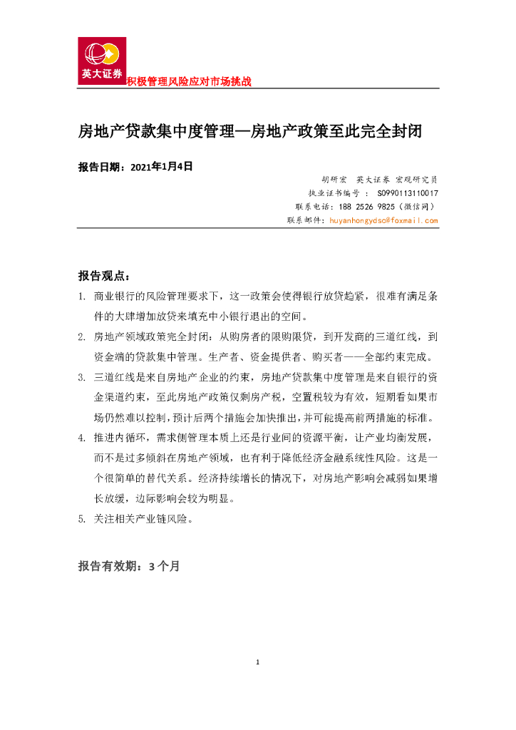 英大证券:房地产贷款集中度管理—房地产政策至此完全封闭.pdf