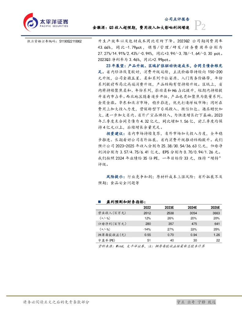 太平洋证券:金徽酒:Q3收入超预期,费用投入加大影响利润增速.pdf