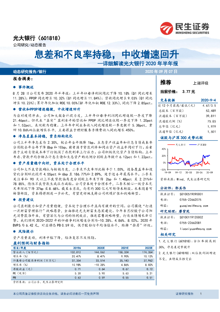 民生证券:详细解读光大银行2020年半年报:息差和不良率持稳,中收增速回升.pdf