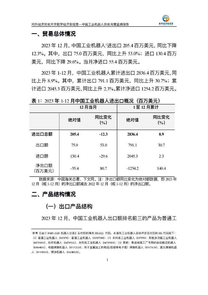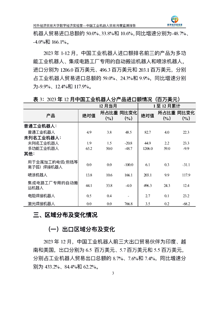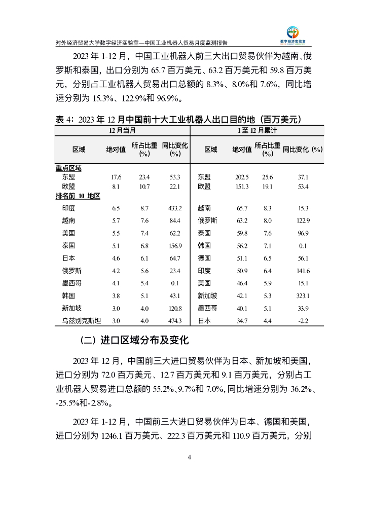 对外经济贸易大学:中国工业机器人贸易月度监测报告(2023年1-12月).pdf