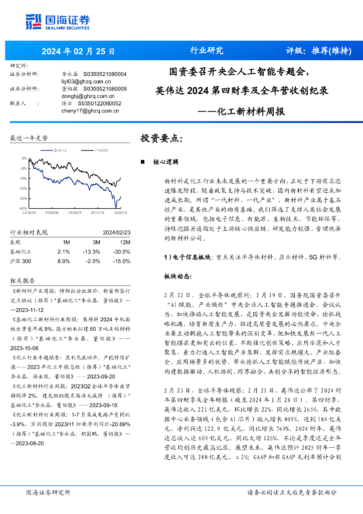 国海证券:化工新材料周报:国资委召开央企人工智能专题会,英伟达第四财季及全年营收创纪录2024.pdf