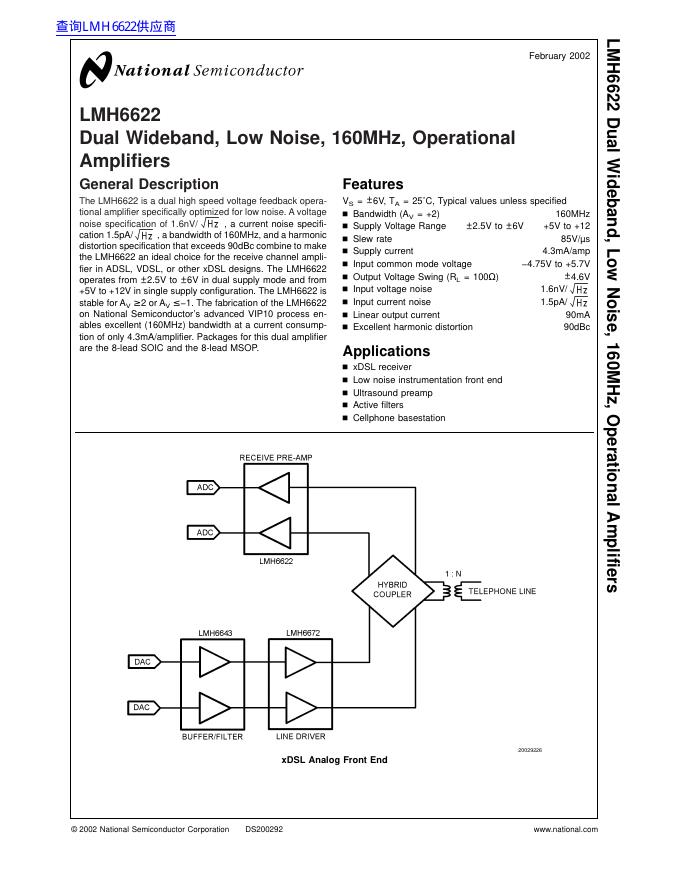 NATIONAL SEMICONDUCTOR - May 27, 2008 DS15BA101 1.5 Gbps Differential Buffer with Adjustable Output Voltage General 说明书