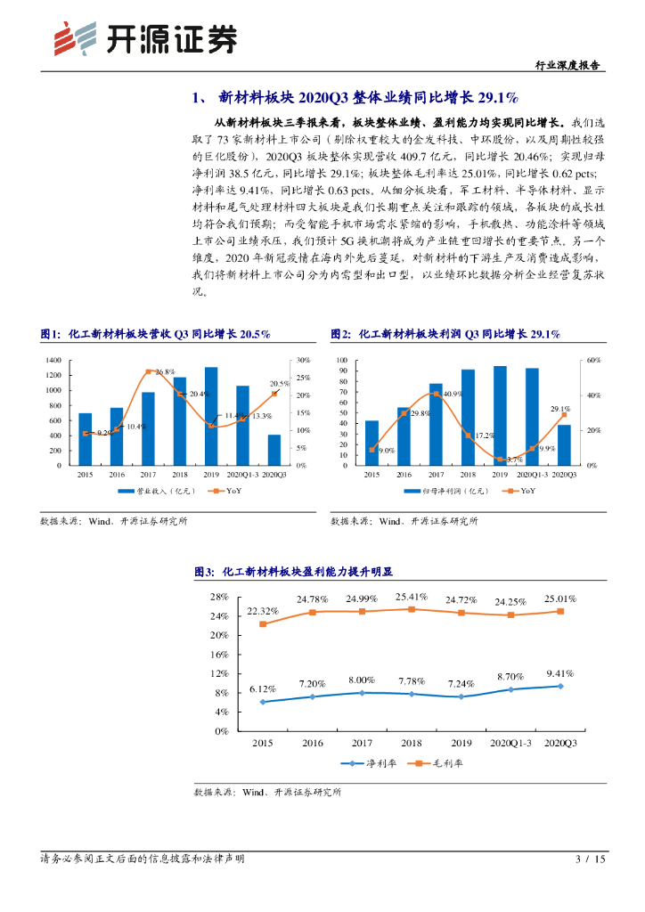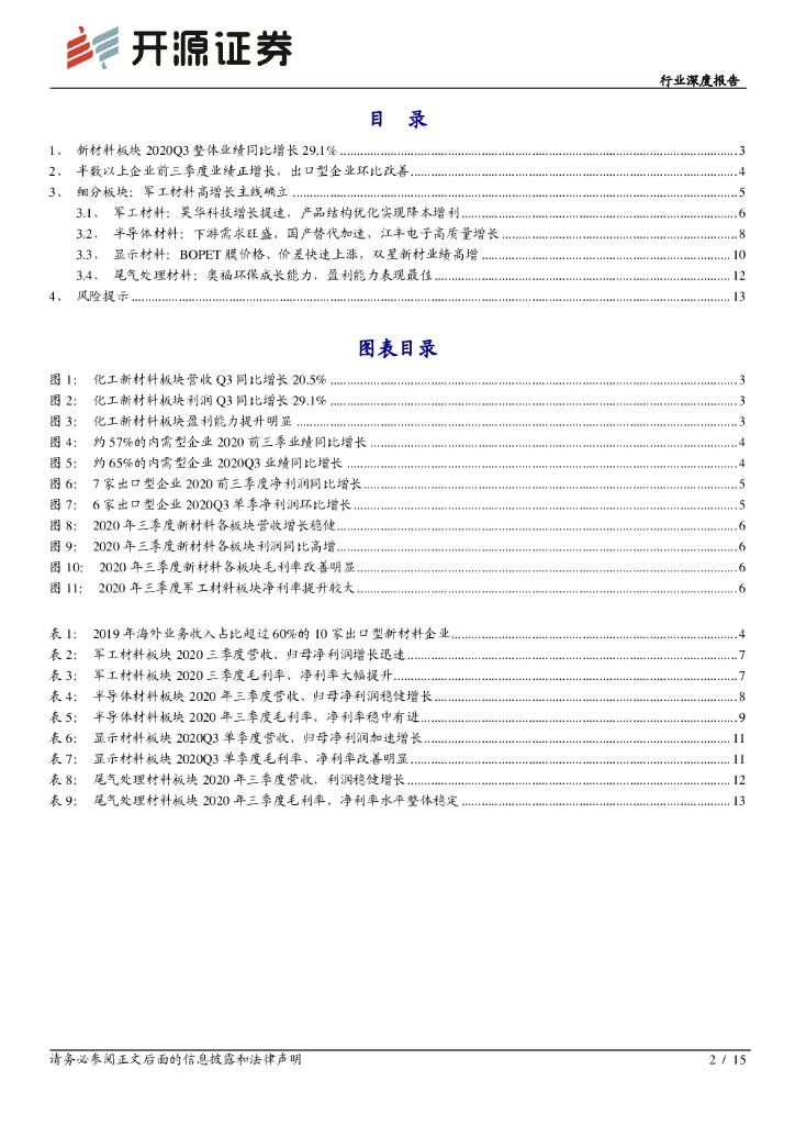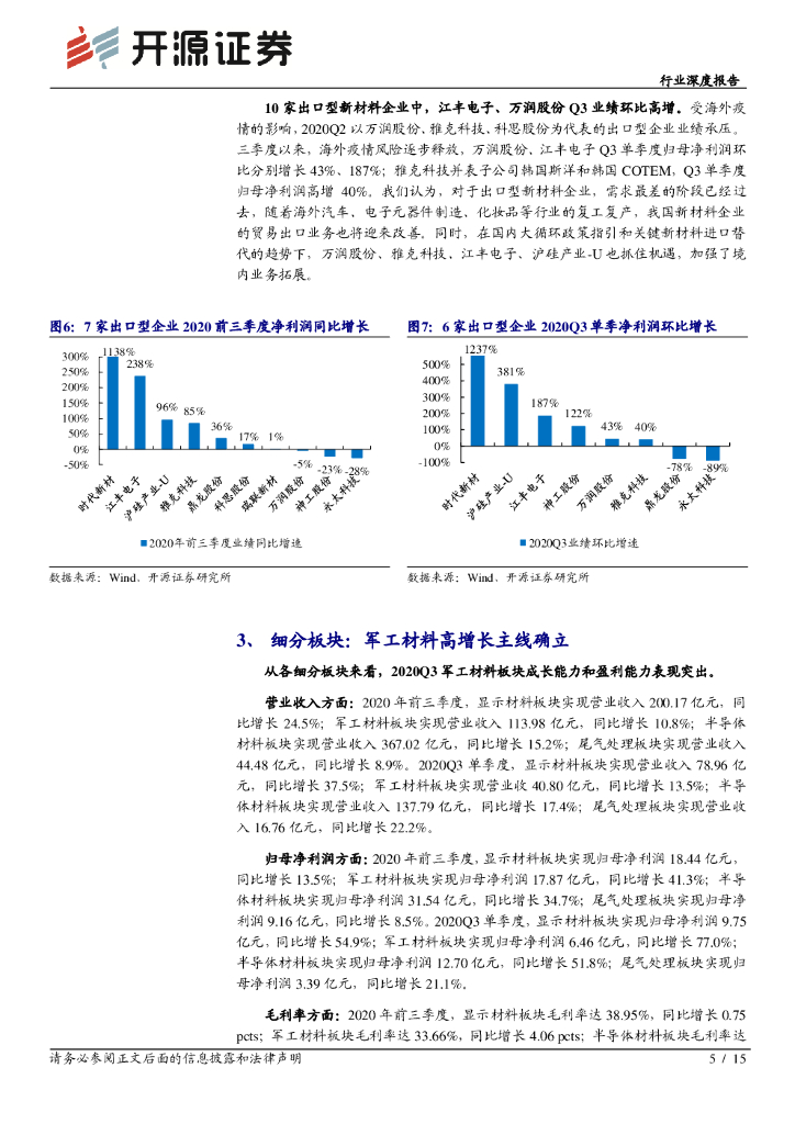 开源证券:新材料2020年三季报综述:出口型企业环比改善,军工材料高增长主线确立.pdf