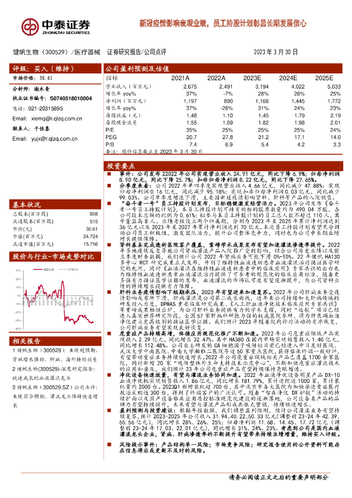 中泰证券:健帆生物(300529)-新冠疫情影响表观业绩,员工持股计划彰显长期发展信心.pdf